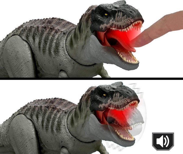 A dinók királya megérkezett! A Jurassic World Saga T-Rex nem ismer ellenfelet. A Jurassic World: Újjászületés film ihlette félelmetes külsejével, vastag bőrével és éles fogaival kiáll bárki ellen. Ha pedig éhes... ne kerülj az útjába. A közel 55 cm hosszú és 21 cm magas, bestia részletesen kidolgozott, élethű külsővel, mozgatható végtagokkal, vérfagyasztó hanggal és félelmetes, támadó mozgással érkezik, hogy a gyerekek valóban beleélhessék magukat a Jurassic World világába. Ha a prédája a szájába kerül, a nyelvét lenyomva bömbölni kezd és harapó mozdulatokat végez. A farokrészét mozgatva a feje pedig fel-le és forgó mozgást végez, ezzel is növelve a csaták, vagy a zsákmányszerzés valósághű játékélményét. A rejtett kódot beolvasva a gyerekek bármely okoseszközzel (Android vagy iOS) feloldhatják a T-Rex digitális változatát az ingyenes Jurassic World Play alkalmazásban, ahol további játékok is várják őket. Az okoseszköz nem tartozék. A színek és díszítések eltérhetnek. Szuper ajándék lehet 4 éves vagy idősebb gyerekeknek és rajongóknak egyaránt.