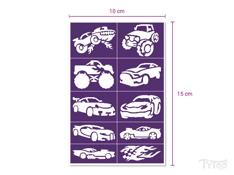 Tytoo Racing Autó Mintás Csillámtetoválás Sablon Szett