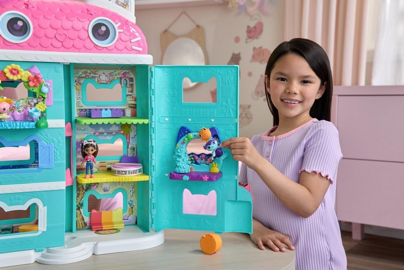 Hozd el otthonodba a Gabi Babaháza Mozifilm varázsát az Gabi Babaháza Mozi Aquaroom Erkély játékszettel. Ez a varázslatos játékszett Halaskó figurával és a kiegészítőkkel elbűvöli a kis rajongókat, miközben felfedezik az új kalandokat. Az erkély bármelyik Gabby’s Dollhouse-hoz csatlakoztatható, végtelen lehetőséget kínálva a játékra és kreatív kalandokra. A Babaház szállító doboz belsejében QR-kódot találsz – olvasd be, hogy exkluzív jutalmat nyerj az ingyenes Gabby's Dollhouse alkalmazásban (iOS és Android rendszeren). A Gabi Babaháza játékszettek tele vannak meglepetésekkel, és életre keltik a játék izgalmát. Gabby’s Dollhouse játékok tökéletesek azoknak a gyerekeknek, akik újra szeretnék élni kedvenc jeleneteiket a Gabby filmjéből, vagy új kalandokat szeretnének teremteni a varázslatos házában. A Gabi Babaháza Mozi Aquaroom Erkély játékszett kompatibilis és hozzá illeszthető a Gabi Babaháza Mozi Babaház (6074334) játékszetthez. Külön kapható.