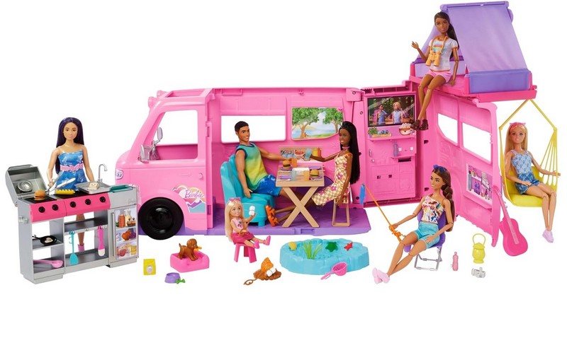 Barbie igazán komolyan veszi a kikapcsolódást. A kinyitható álomlakóautóval megunhatatlan szórakozás vár rá és a gyerekekre is. A szuper járgányban hét játéktér és több mint 60 mesés kiegészítő várja, hogy végtelen kedves történetet inspiráljon. A guruló kerekekkel Barbie és a gyerekek mesés kalandokra indulhatnak és ha megérkeztek, az oldalsó ajtókat kinyitva kezdődhetnek a fantasztikus történetek. A fürdőszobával, BBQ konyhával, nappalival, étkezővel, horgász felszereléssel és hintával és a többi remek kiegészítővel egy egész napos kempingezős kaland is eljátszható. Ha pedig az éjszakát is a csillagos ég alatt képzelik a gyerekek, a kinyitható sátorban 2 - külön kapható - baba is elfér. A hatvannál is több kiegészítővel a tábortűznél való énekléstől, a horgászáson keresztül, a tisztálkodásig végtelen mesés történet eljátszható. Amikor vége a kempingezésnek a kiegészítők bepakolhatók a kocsiba, így könnyen tárolhatók – hogy másnap indulhasson a következő kaland! A készlet a babát nem tartalmaz. A színek és díszítések eltérhetnek. 3 éves kortól ajánljuk.