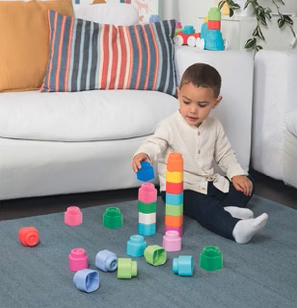 A Clementoni Clemmy Rainbow építőkockák tökéletes belépőt jelentenek a legkisebbek számára az építés és az alkotás világába. Ez a különleges, 9 darabos készlet a szivárvány élénk színeiben pompázik, kifejezetten a 6 és 36 hónap közötti babák igényeire és biztonságára tervezve. Maximális biztonság: Az ultra-puha, rugalmas anyagból készült kockák teljesen veszélytelenek; a babák bátran rágcsálhatják, dobálhatják vagy akár rá is ülhetnek, nem okoznak sérülést. Szenzoros fejlesztés: Az élénk, tiszta színek stimulálják a vizuális érzékelést, míg a kockák egyedi textúrája és puhasága segíti a tapintás és a finommotorikus készségek fejlődését. Higiénikus és praktikus: A kockák nem mérgező, enyhén illatosított anyagból készültek. Rendkívül könnyen tisztán tarthatók: langyos, szappanos vízzel (max. 30°C) moshatók, vagy akár mosogatógépben is tisztíthatók. Fejlesztő játék: A kockák könnyen egymásba illeszthetők és toronyba rakhatók, így sikerélményt nyújtanak az első építési kísérletek során, miközben fejlesztik a szem-kéz koordinációt. A Clemmy építőkockák évtizedek óta a szülők kedvencei, mivel egyesítik a kreatív játék örömét a legmagasabb szintű bababiztonsággal.