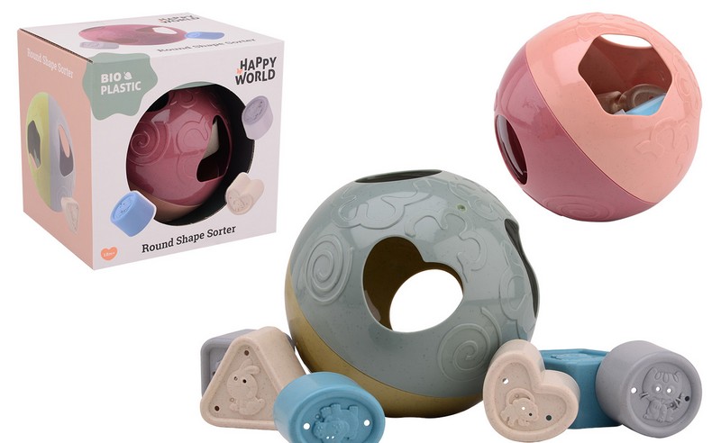 A Happy World bio műanyagból készült gömb formabedobó ideális első játék a kis felfedezőknek. A hat különböző nyílásnak és állatfigurás elemeknek köszönhetően a gyerekek megtanulják megkülönböztetni a formákat és színeket, fejlesztik finommotorikájukat és szem-kéz koordinációjukat. A játék természetes módon segíti a türelmet és a koncentrációt. A bio műanyag anyag környezetbarát és egyben tartós a mindennapos játékhoz. A könnyű gömböt a kis kezek kényelmesen meg tudják fogni, az elemek lekerekített élei pedig biztonságos használatot biztosítanak.