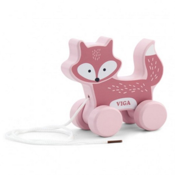 Bájos róka húzogatós játék, négy keréken guruló. Kiváló minőségű, tartós, könnyen tisztítható fából készült játék. A kötél hossza 62 cm. Mérete: 10,5x10,5x4,5 cm.