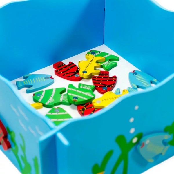 A mágneses horgászjáték lenyűgöző és interaktív fajáték, amely az ügyességi játékok kategóriába esik, és kiválóan alkalmas a gyerekek finommotoros készségeinek, türelmének és koncentrációjának fejlesztésére. Ez a játék nem csak szórakoztató és izgalmas időtöltést biztosít, hanem oktatási értékkel is bír, ösztönözve a gyerekeket a tanulásra és a felfedezésre. Használata nagyon egyszerű, a játékosok egy mágneses horgászbotot használnak halak "kifogására". A halakat a játéktérben elhelyezett mágneses részekkel látják el, így amikor a horgászbot mágneses végét a halak közelébe helyezik, azok "harapnak". A halak "kifogása" türelmet és koncentrációt igényel, így mindez játékos formában fejleszti a gyerekek kitartását és figyelmét, de az ügyességre és koncentrációra is nagy hatással van. A fajátékok nemcsak szórakoztatóak, hanem hatékonyan támogatják a gyermek kognitív, motorikus és problémamegoldó képességeinek fejlődését. Az egyszerű, mégis ösztönző kialakításnak köszönhetően ideális eszköz az óvodás és kisiskolás korosztály számára. A természetes fából készült készségfejlesztő játékok környezetbarát megoldást kínálnak a szórakozásra, miközben fejlesztik a gyermek kézügyességét, koncentrációját és logikai gondolkodását. Tartós, biztonságos és időtálló választás minden korosztály számára. Mérete: 25 X 19 X 4 cm.