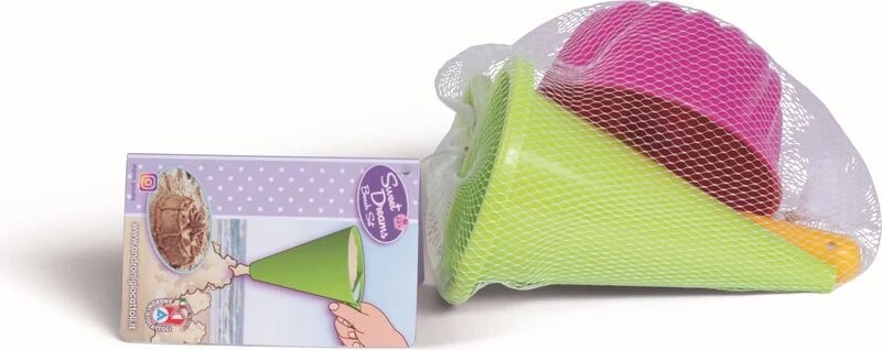 A homokozó játékok nem csupán egyszerű szabadidős eszközök, hanem a gyermekkor legfontosabb kreatív és készségfejlesztő kellékei. Legyen szó a kertről, a játszótérről vagy a tengerpartról, a homokozás az a tevékenység, ahol a fantázia és a fizikai valóság találkozik. 3 darabos homokformázó készlet – kuglóf formájú, élénk színben. Olaszországban készült, kiváló minőségű műanyagból. Tartalmazza dekoráló lapátot, tölcsért és kuglóf formát. Csomagolva zacskóban mérete: 11 x 18 x 17 cm.