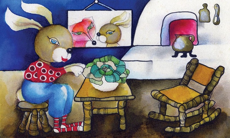 Amikor tavasszal a róka jégből készült háza elolvad, barátja, a jószívű nyulacska befogadja. Ám a róka elkergeti őt saját otthonából. A nyulacska segítségére sietnek azonban barátai, a medve, a bika, a kutya és a kakas.