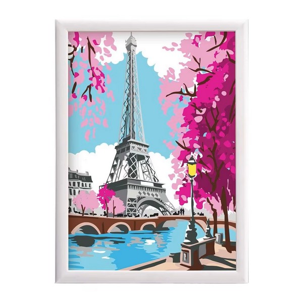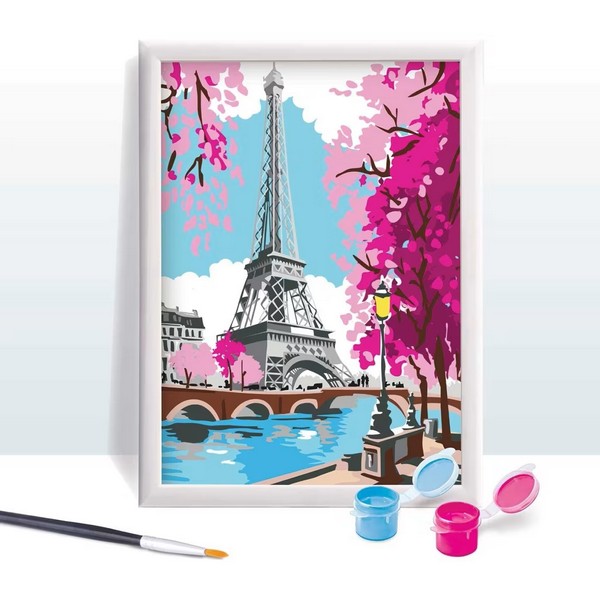 Készítsd el saját festményedet ezzel a számozott kifestő készlettel! Ez a kreatív szett tökéletes kikapcsolódást nyújt, miközben fejleszti a kézügyességet és a kreativitást. A készlet minden szükséges eszközt tartalmaz, így azonnal belefoghatsz a festésbe. A készlet tartalmaz egy előrenyomtatott kartonlapot, amelynek minden pontja egy adott színnek megfelelő számmal van jelölve. Akril festékkel lehet megfesteni a képet. A képkeret a csomag része. Kreatív és relaxáló otthoni tevékenység minden korosztály számára. A készlet tartalma: Számozott vászon, akril festékek, ecset, képkeret, használati útmutató. A festés élmény: Könnyen követhető számozás a vásznon. Élénk színek. Gyönyörű Párizsi látkép. Fejleszti a koncentrációt és a türelmet. Remek ajándék kreatív gyerekeknek, felnőtteknek. A képkerettel azonnal kiakasztható a falra, így a kész festményt büszkén kiállíthatod a szobádban! Méret: 26 x 20 x 4 cm (csomagolás).