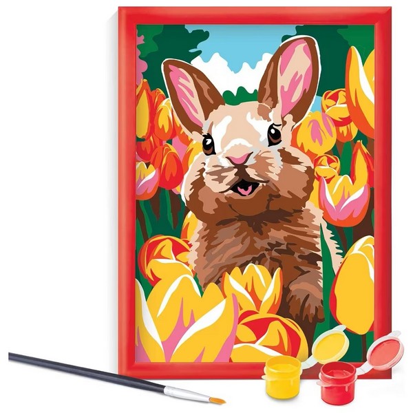 Készítsd el saját festményedet ezzel a számozott kifestő készlettel! Ez a kreatív szett tökéletes kikapcsolódást nyújt, miközben fejleszti a kézügyességet és a kreativitást. A készlet minden szükséges eszközt tartalmaz, így azonnal belefoghatsz a festésbe. A készlet tartalmaz egy előrenyomtatott kartonlapot, amelynek minden pontja egy adott színnek megfelelő számmal van jelölve. Akril festékkel lehet megfesteni a képet. A képkeret a csomag része. Kreatív és relaxáló otthoni tevékenység minden korosztály számára. A készlet tartalma: Számozott vászon, akril festékek, ecset, képkeret, használati útmutató. A festés élmény: Könnyen követhető számozás a vásznon. Élénk színek. Gyönyörű vidám nyuszis kép. Fejleszti a koncentrációt és a türelmet. Remek ajándék kreatív gyerekeknek, felnőtteknek. A képkerettel azonnal kiakasztható a falra, így a kész festményt büszkén kiállíthatod a szobádban! Méret: 26 x 20 x 4 cm (csomagolás).