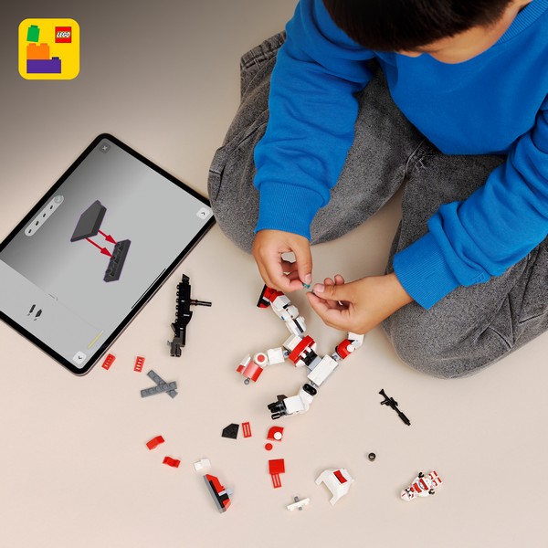 Adj izgalmas bevezetőt kisgyermekednek a LEGO® Star Wars™ univerzumába a Shock Trooper™ klónkatona-robotpáncél (75448) készlettel! Ez a beállítható robotfigura remek kis ajándék fiúknak, lányoknak és minden 6 éves vagy idősebb Star Wars rajongónak. Könnyen megépíthető, így a gyerekek gyorsan belekezdhetnek a játékba. Helyezd a Shock Trooper klónkatonát a pilótafülkébe, és rögzítsd sugárvető puskáját a páncél hátuljához! Állítsd a karjait és a lábait harci pózokba! Helyezd a nagy sugárvető puskát a markába, és aktiváld a korongvetőt! A Shock Trooper klónkatonák jellegzetes piros-fehér színű páncélzatával a robot a játékidő küldetései között a gyerekek hálószobájában is jól mutat. Ez a robot játéképítő készlet a gyűjthető LEGO Star Wars robotok sorozat része (külön kapható). A LEGO Builder appal a gyerekek magabiztosan építhetnek – felnagyíthatják és elforgathatják 3D-ben a modelleket, valamint a könnyen követhető digitális útmutatókkal nyomon követhetik a haladásukat. A készlet 151 elemet tartalmaz.