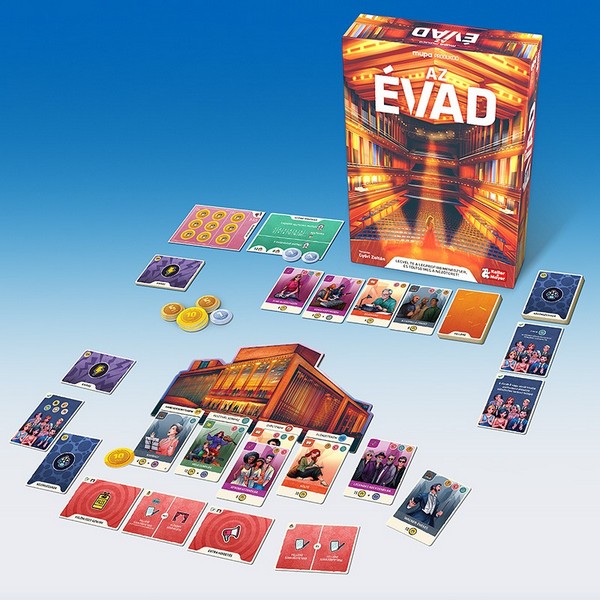 Légy te a kulisszák mestere! Az Évad társasjáték elhozza annak az izgalmát, hogy testközelből ismerhesd meg, hogyan működik Magyarország egyik vezető kulturális intézménye a színfalak mögött. Most rajtad a sor, hogy te legyél a fő rendezvényszervező, aki megálmodja és sikerre viszi a szezon legkiemelkedőbb eseményeit.Ez a stratégiai, erőforrás-menedzsmentre épülő társasjáték izgalmas kihívások elé állít minden játékost. A cél, hogy a rendelkezésre álló időt, költségvetést és szakmai kapcsolatokat a lehető legjobban kihasználd, miközben egyre sikeresebb eseményeket hozol létre. A döntéseid és a tervezési képességed határozzák meg, mennyire lesz emlékezetes az évad. Az Évad társasjáték különleges élményt nyújt mindazoknak, akik szeretnének bepillantani a rendezvényszervezés világába. Nem csupán szórakoztató, hanem fejleszti a logikai, stratégiai és problémamegoldó gondolkodást is, miközben betekintést enged a kulturális élet izgalmas háttérfolyamataiba. Tartalom: 100 fellépő kártya, 30 közönségsiker-kártya, 35 kihíváskártya, 16 játékoskártya, 4 játékostábla, 1 extrahirdetés-tábla, 1 évadtematika, 72 tapskorong, 1 évadértékelő tömb, 1 játékszabály.