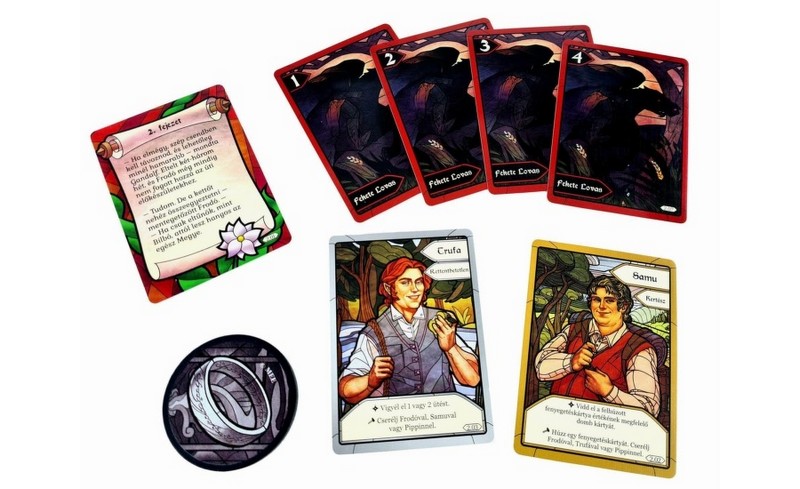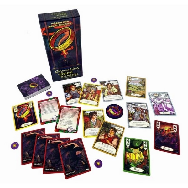 A Gyűrűk Ura - A Gyűrű Szövetsége egy kooperatív ütés-vivős kártyajáték, amelyben a regény történéseit követhetjük fejezetről fejezetre. "Fogják-e énekelni a tűznél, vagy fel fogják-e olvasni vaskos, fekete és vörös betűs könyvekből, hosszú-hosszú évek múltán is. És mondják-e majd: – Halljuk csak azt Frodóról meg a Gyűrűről! – Meg azt, hogy: Igen, ez az egyik legkedvesebb történetem." Kérdezi Samu, és talán maga Tolkien sem tudta, mikor a fentieket írta, hogy bizony így lesz. Aztán a könyvből filmek készülnek, meg néhány egészen kiváló társasjáték. Az első kötetből egész pontosan ez itt: A Gyűrűk Ura - A Gyűrű Szövetsége. A játékban a Gyűrűk Ura - A Gyűrű Szövetsége című regény történéseit követhetjük fejezetről fejezetre. A játékosok minden fejezetben más és más szereplőket alakíthatnak majd: Az első fejezetben például (Egy rég várt ünnepély) Bilbó, Frodó, Gandalf és Pippin közül választhatunk, de felvonul a regény minden fontosabb szereplője (jópáran olyanok is, akik a filmből kimaradtak). Minden szereplőnek lesz valamiféle célja, amit el kell érnie egy forduló lejátszása során (pl., hogy szerezzen meg pontosan 3 ütést, vagy üssön el egy bizonyos lapot), a játékosok pedig azon fognak dolgozni, hogy mindenkinek a célja teljesüljön, mivel így léphetnek tovább a következő fejezetre. És mindeközben természetesen nem beszélhetnek a kezükben tartott lapokról. A játék 18 fejezete során azonban nem csak a szereplők (tehát a teljesítendő feladatok) változnak: a játékosok dolgát különböző fenyegetések és események is nehezítik majd, de előfordulhat, hogy ajándékokat kapnak egy-egy fejezet erejéig. Így tehát minden fejezet egy kicsit más, mint a többi, de kihívás lesz mind, egytől egyig, és bizony előfordul majd, hogy egy kalandnak többször is neki kell rugaszkodni, mire sikerül! Ha pedig a végére értetek, ott az „Indul a küszöbről az út” játékmód, de ha úgy tetszik, akár újra végigjátszhatjátok a teljes történetet! Akárhogy is: Középfölde sorsa lesz a kezetekben! A Gyűrűk Ura: A Gyűrű Szövetsége egy könnyen tanulható társasjáték, 1 - 4 játékos részére, az átlagos játékidő rövid, csak 20 perc. A társast, a könnyebb tanulhatósága ellenére, csak 10 éves kortól ajánljuk kipróbálni. Kooperatív jellegű, a játékmenet erősen épít az ütés-váltós, a szcenárió / küldetés / kampány és a limitált kommunikáció mechanizmusokra.
