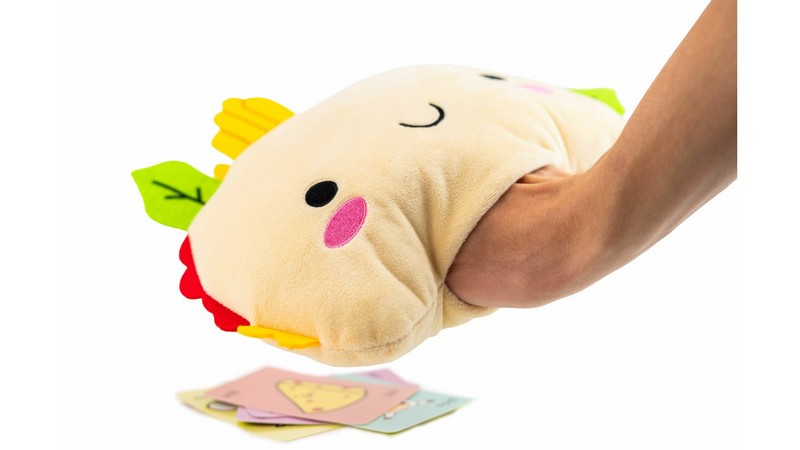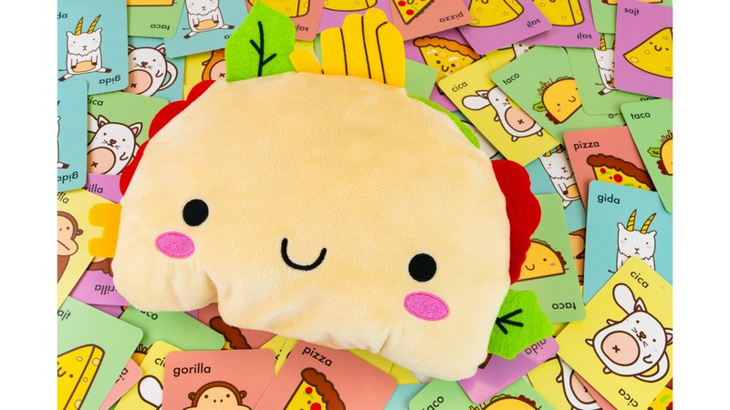 Cica Pizza Plüss Gida Sajt – A taco új dimenziója. A villámgyors partijáték most kapott egy extra poént: egy puha, ölelni való plüss taco is belépett a buliba! A szabályok ugyanazok, mint a népszerű Cica Pizza Taco Gida Sajt-ban, de a plüss taco minden kört kiszámíthatatlan fordulattal tesz még viccesebbé. A játék menete ismerős: a játékosok sorban pörgetik a kártyákat, miközben hangosan skandálják a szavakat. Amikor a kimondott szó és a lap egyezik, minden kéz egyszerre csap az asztalra. Igen ám, de aki viseli a plüsstacót, csak azzal a kezével üthet, amelyiken a taco van – és ha hibázik, máris tovább kell adnia. Így lesz a reflexekből kabaré, a nevetésből pedig kötelező program. És van még egy kis csavar: ha valaki lapokat kénytelen felvenni, a plüss viselője megszabadulhat a saját paklija egy lapjától. A taco tehát nemcsak megnehezíti a dolgodat, de néha a győzelem felé is löki a kezed. A Cica Pizza Plüss Gida Sajt tízpercnyi sikongató káosszal dobja fel bármelyik partit, és már a doboz felnyitásától kezdve garantált a vidámság, legyen szó kicsikről vagy nagyokról. Nevetés, káosz és egy puha taco plüss – kell ennél több?