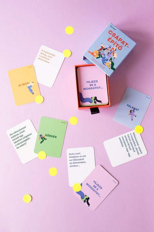 A Körvonal Csapatépítő egy könnyed kártyajáték, ami azonban mély beszélgetéseket is képes elindítani. Baráti társaságokban és munkahelyi csapatokban is tökéletesen működik. A játék során garantáltan olyan új oldalról ismeritek meg egymást, amik a monoton hétköznapok során rejtve maradnak. A játékban kérdések, állítások és feladatok váltják egymást – van, ami elgondolkodtat, más vidám, vagy épp kreatív kihívás elé állít. A cél, hogy közelebb kerüljetek egymáshoz, jobban megértsétek a többieket és szabadon, őszintén beszéljetek a közös élményekről, célokról, tapasztalatokról. A játék végére garantáltan máshogy néztek majd egymásra – sőt, talán még a közös munka is gördülékenyebb lesz. Ideális választás céges eseményekre, tréningekre vagy akár olyan baráti társaságoknak, akik szívesen beszélgetnek önismereti, közösségi témákról is. Játék menete: Haladjatok sorban, mindenki húzzon egy kártyát a választott kategóriából, és válaszoljátok meg a rajta szereplő kérdést vagy teljesítsétek a feladatot. Osszátok meg bátran egymással a gondolataitokat, érzéseiteket – játékos, biztonságos formában.