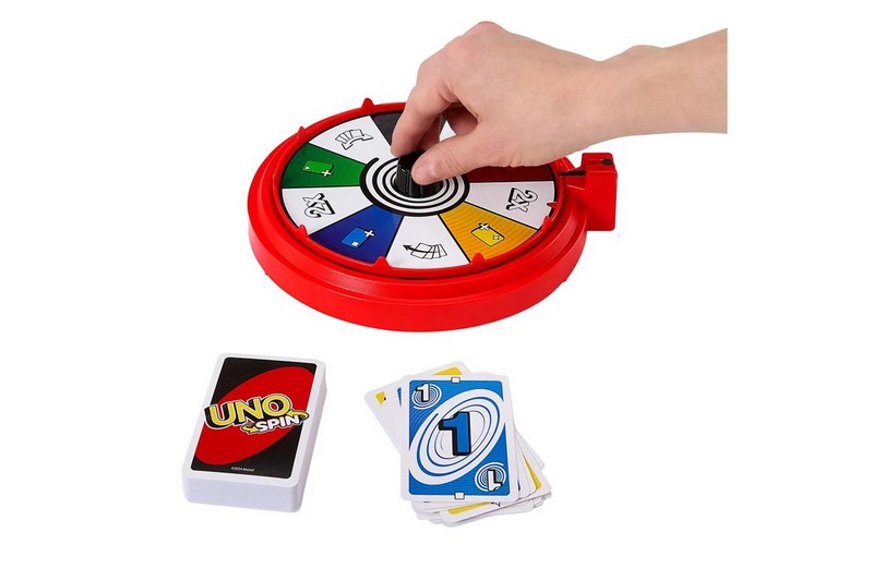 Az UNO Spin a klasszikus UNO játék még pörgősebb változata! Ebben a változatban az alap UNO-hoz hasonlóan az a játékosok célja, hogy megszabaduljanak a kezükben tartott lapoktól. Ehhez figyelni kell, milyen színű és számú kártya van a dobópakli tetején, hiszen csak ahhoz illeszkedő tehető le. A játékot az akciókártyák és a speciális pörgető teszik igazán izgalmassá. Amikor kijátszanak egy pörgető kártyát, meg kell pörgetni a kereket, majd követni kell az utasításokat attól függően, hogy hol áll meg. A különböző mezők teljesen megváltoztathatják a parti végkimenetelét. Ja, és a legfontosabb: Ha valakinek már csak egyetlen lap marad a kezében azonnal kiáltsa: UNO! Ha ezt elfelejti, jön a büntetés. :) A készlet 112 kártyát és a pörgetőt tartalmazza. 7 éves kortól ajánljuk.
