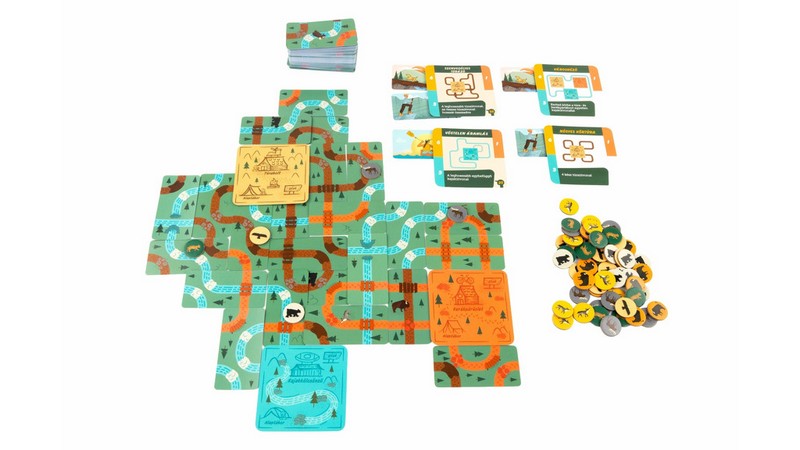 Építsd meg a saját ösvényeidet! A legjobb kalandorok nem követik az ösvényeket – ők maguk alakítják ki azokat! A Kalandtúrában a természetjárás, a biciklizés és a kajakozás szerelmeseként te építheted meg a saját útvonaladat, hogy minél több pontot szerezz és túlszárnyald a többieket. Minden játékos három táborkártyával kezd, és célja, hogy ezekből kiindulva zárt túra-, kerékpár- és kajakútvonalakat hozzon létre. A játék során minden forduló elején nyolc útszakaszkártyát kapsz, és minden körben kettőt kiválasztasz és lehelyezel, majd továbbadod a kezedben maradt lapokat. A hosszú, összetett útvonalak kockázatosak, de ha sikerül őket lezárnod, rengeteg pontot hozhatnak! Emellett a játék közbeni és játék végi célok teljesítésével további értékes pontokat szerezhetsz. A Kalandtúra nemcsak izgalmas, de praktikus is: a karabinerrel ellátott, bárhová magaddal vihető tokja még túrázás közben is segítségedre lesz. A csomagban található Állatok kiegészítő új kihívásokkal és stratégiákkal gazdagítja az élményt, hogy mindig legyen új felfedeznivaló! Ha egyedül fedeznéd fel saját ösvényeidet, három nehézségi szinten próbálhatod ki magad az epikus szóló módban. Hozd ki magadból a felfedezőt, és építsd meg a tökéletes ösvényt! Készen állsz a kalandra? A Kalandtúra egy könnyen tanulható társasjáték, 1 - 4 játékos részére, az átlagos játékidő rövid, csak 30 perc. A társast, a könnyebb tanulhatósága miatt, akár már 8 éves kortól ajánljuk kipróbálni. A játékmenet erősen épít a lapka-elhelyezés, a kollekció gyűjtés, az útépítés, a merj és nyerj és a solitaire mechanizmusokra.
