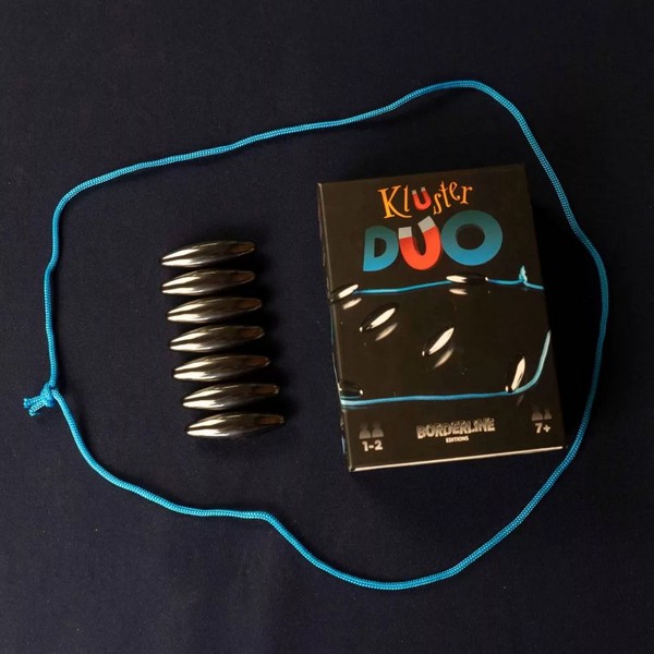 A Kluster most megújult, még több izgalmat rejt magában a két fős Kluster Duo verziója! Próbálj meg megszabadulni minél gyorsabban a mágnesektől. Bár ez könnyűnek hangzik, de ezek a mágnesek sokkal nagyobbak és nincs rajtuk sima felület! Vajon le tudod rakni a mágneseket anélkül, hogy összetapadnának? A Kluster Duo még nagyobb mágnesekkel, de pont ugyan annyi, ha nem több mókával várja a két játékost. Igen két főt, hiszen itt csak 12 db hatalmas mágnes várja a játékosokat, de ne aggódj, azért mert ketten vagytok a szórakozás attól még garantált. A Klusterhez hasonlóan a célotok itt is, hogy megszabaduljatok a kezetekben lévő mágnesektől. Osszátok el egymás között a mágneseket és a madzagon belül helyezzétek le őket úgy, hogy ne tapadjanak össze a mágnesességtől. Az első kettő könnyű lehet, de utána... A Kluster Duoban a kihívás nem csak a nagyobb mágnesekben rejlik, hanem azok kialakításában is egyaránt! Hiszen itt nincs sima oldal, az ívelt mágnesek nem állnak meg olyan könnyen és bármi elmozdíthatja. A Kluster Duo egy nagyon könnyen tanulható társasjáték, 1 - 2 játékos részére, az átlagos játékidő rövid, csak 10 - 20 perc. A társast, a könnyebb tanulhatósága miatt, akár már 7 éves kortól ajánljuk kipróbálni. A játékmenet erősen épít a terület befolyásolás/irányítás és a mov-18 map deformation mechanizmusokra.